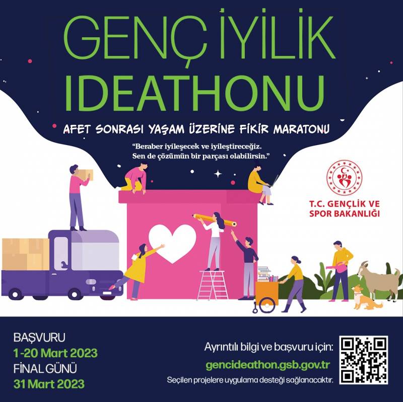 6 Şubat 2023 tarihinde Kahramanmaraş'ın Pazarcık ve Elbistan ilçelerinde meydana gelen ve 11 ilimizde etkili olan deprem afeti sonrasında ortaya çıkan ihtiyaç ve iyileştirme alanlarına yönelik çözümler konusunda gençlerin gözlemledikleri sorunları, kendi bakış açıları ile ifade etmeleri ve sorunlara yönelik çözüm önerilerini sunmaları amacıyla "Genç İylik İdeathonu" konulu fikir yarışması düzenlenmektedir.
