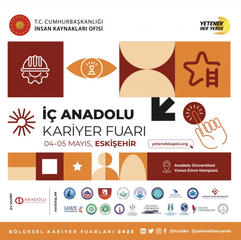 | İç Anadolu | 4-5 Mayıs 2023 | Anadolu Üniversitesi | Tel: 0222 335 05 80 Dahili: 4505 kariyer@anadolu.edu.tr | Anadolu Üniversitesi Yunus Emre Kampüsü |
